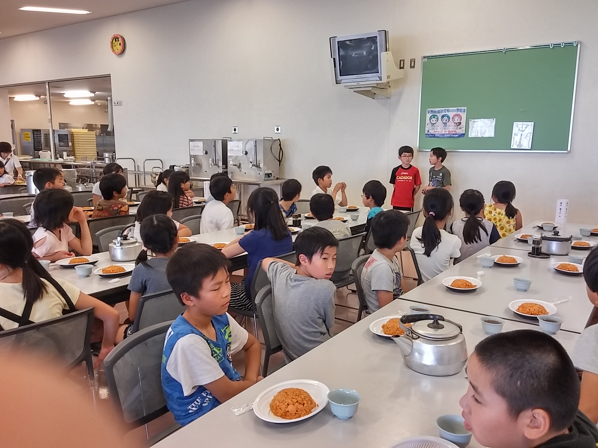 今日のお昼ご飯はチキンライスです。お腹がすいていたので、おかわりに来る人もたくさんいます。