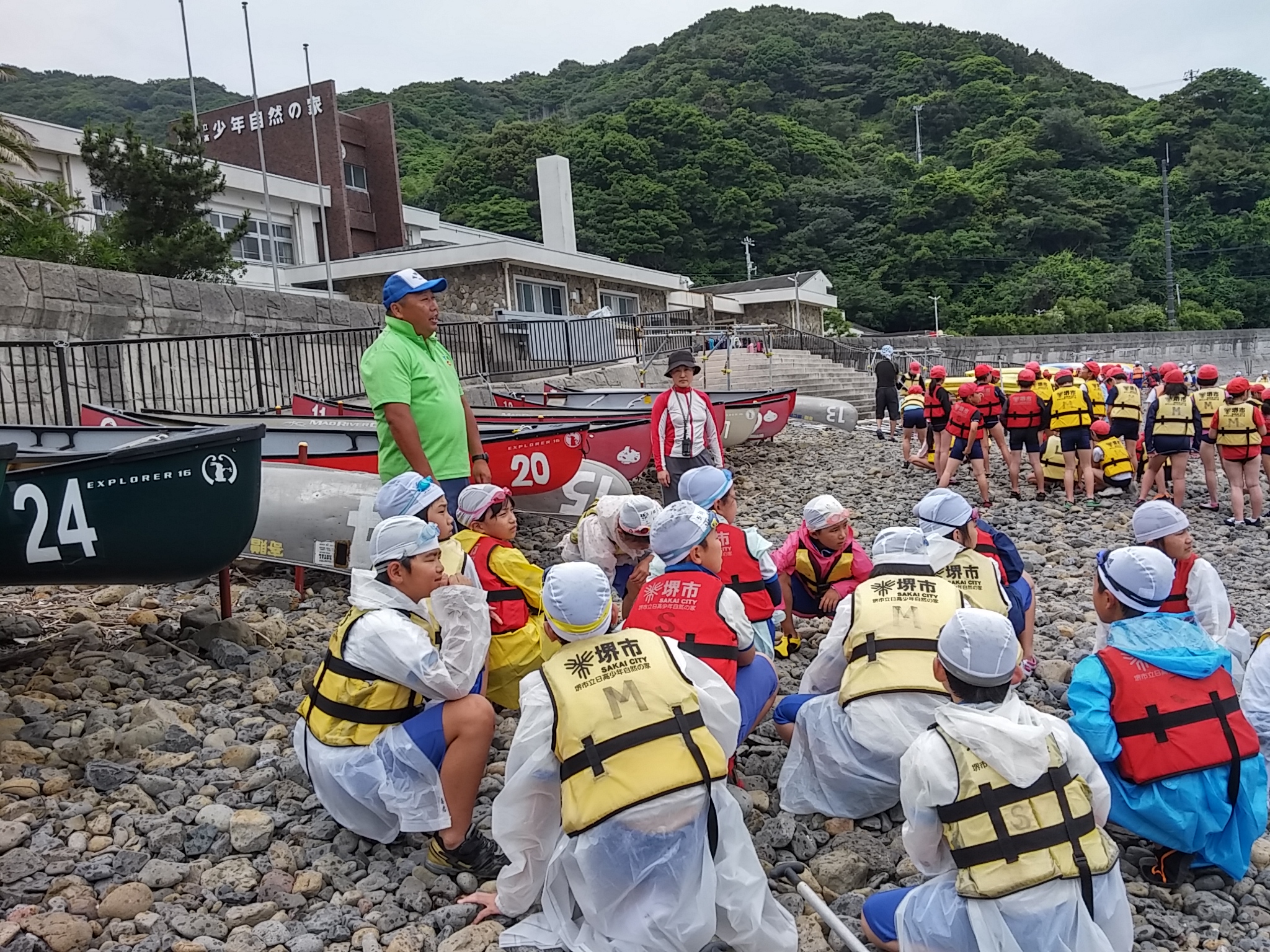入館式で、この施設の使い方やカヌー・カヤックの漕ぎ方の説明を聞きました。楽しみです!