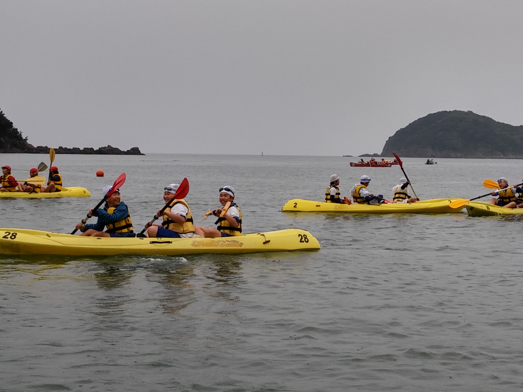 ついに海に出ました!グループで力を合わせて、一生懸命漕いでいます。