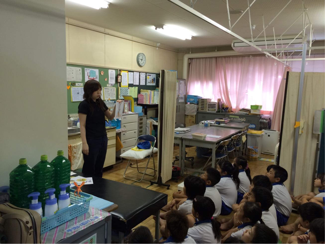 身体測定のとき、保健の先生から健康について、いろいろなお話をしていただいています。