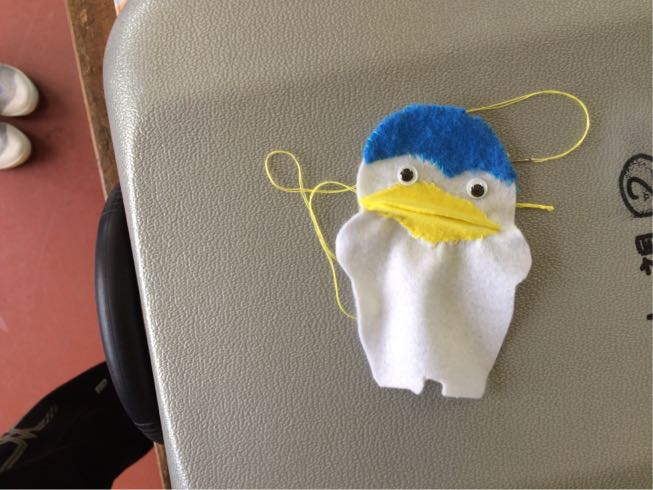 家庭科の時間を利用して、6年生のキャラクターの「ジャキーペン」を作っています。