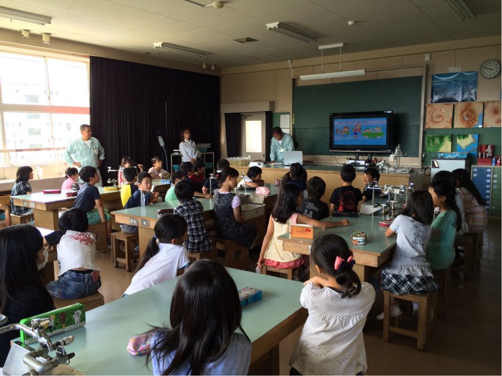 水道局の方に来ていただいて、水の学習をしています。