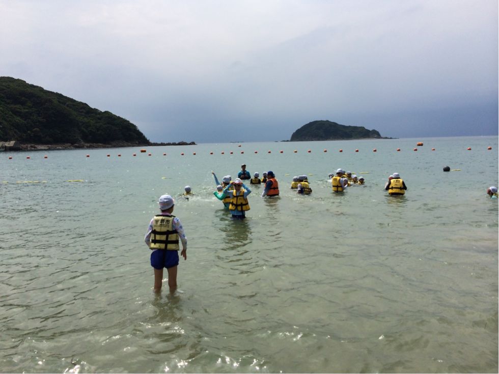カヌー・カヤックの活動の前に海に入っています。