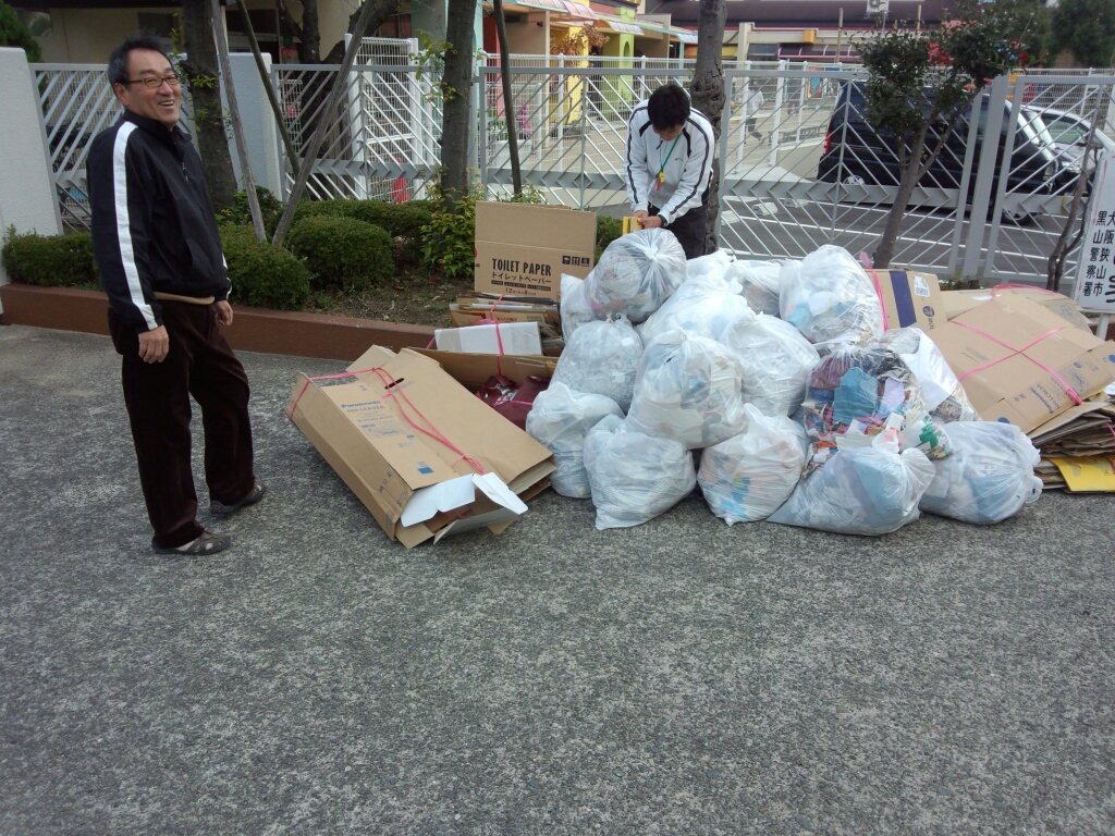 先日のフレンドパークで使った新聞紙とダンボールをみんなで協力して片付けました。