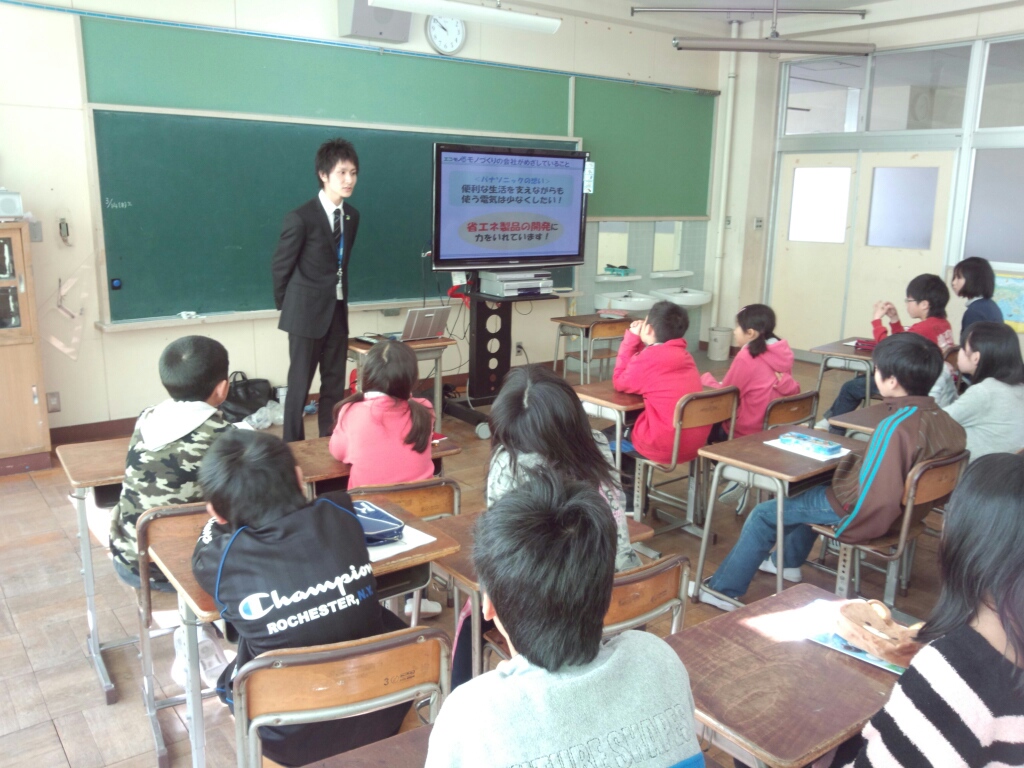 パナソニックの社員の方に来ていただいてエコについてのお話をしていただきました。