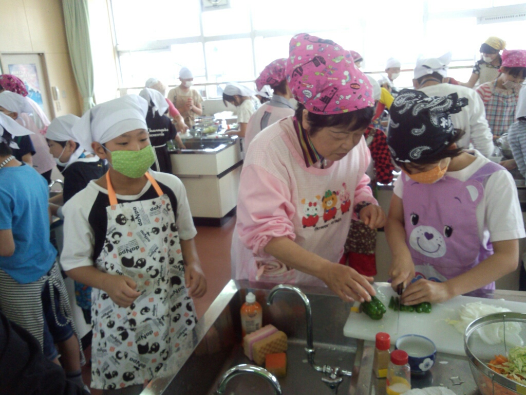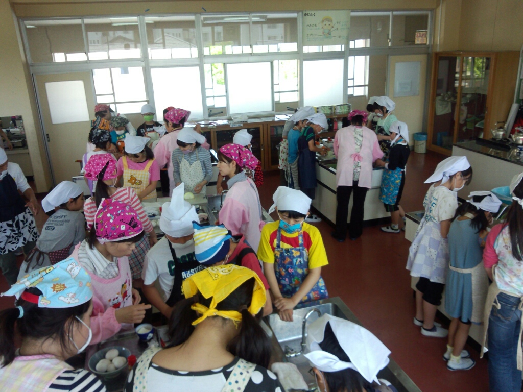 おそろいのエプロンを着ておられるのがゲストティーチャーの方々です