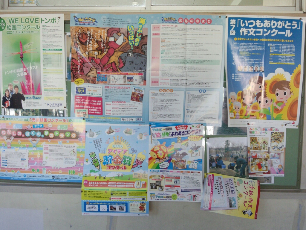 夏休みの作品募集のポスターが貼られています