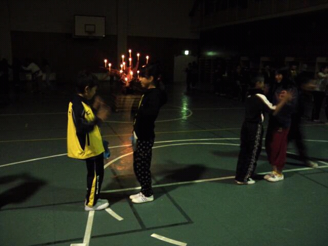 キャンプファイアーの予定が、風が少しきついため、キャンドルファイアーになりました。