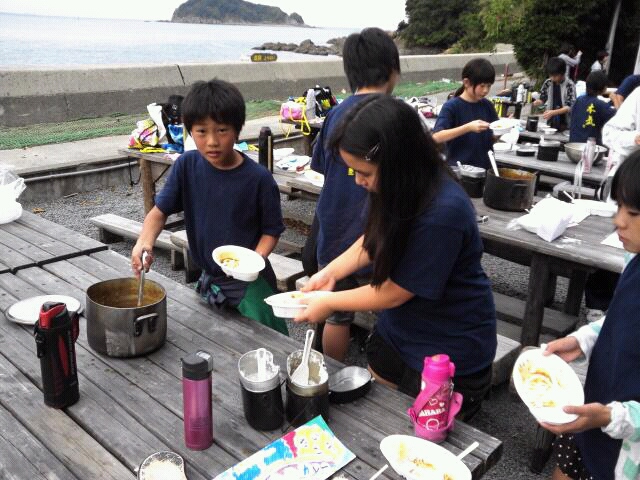 カレーの味比べをして、一番おいしいと思った班にあめ玉を一つ投票します。