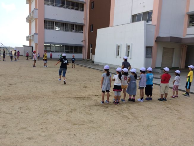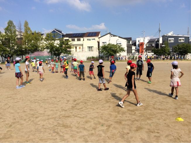 6年生のなかよし委員会の人たちがリーダーとなり、全校がグループに分かれて楽しんでいます。