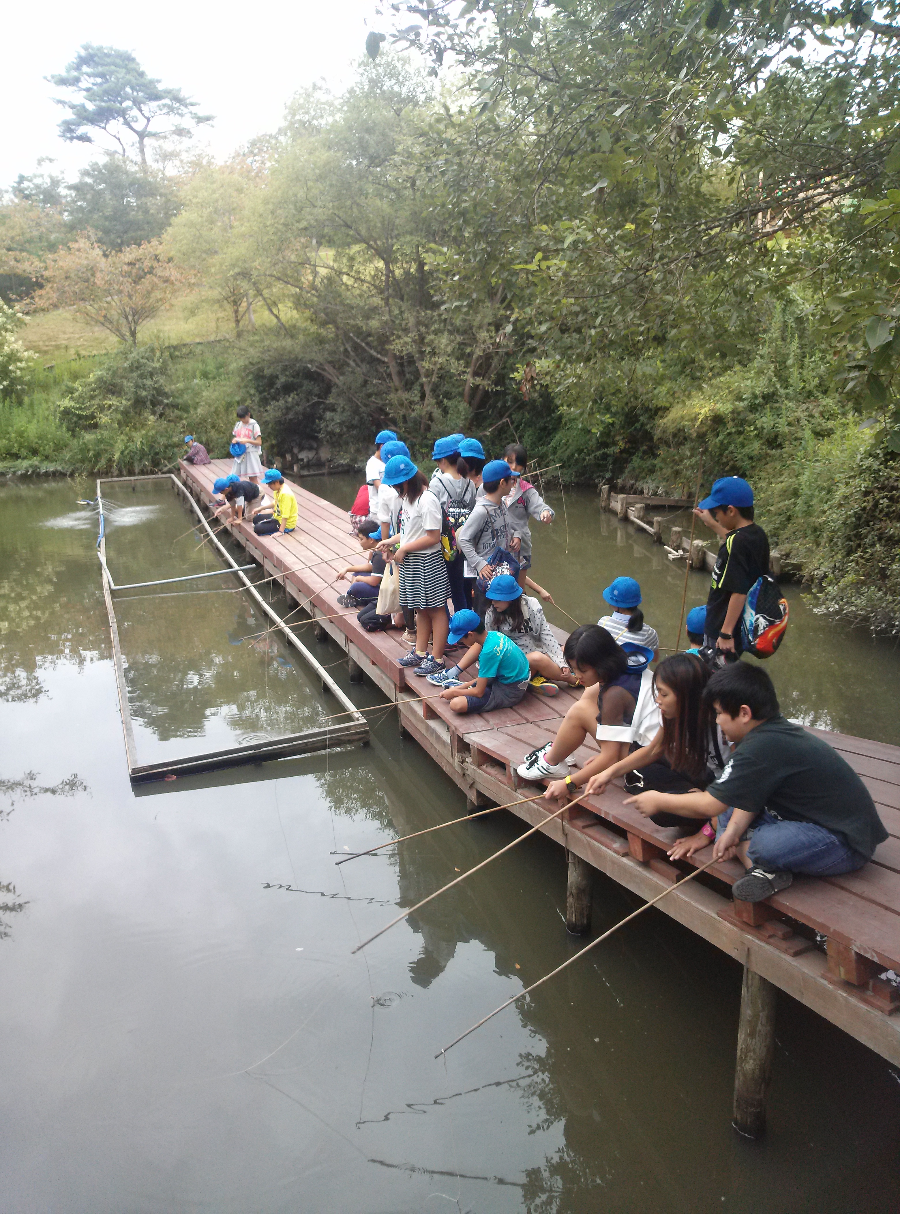 モクモクファームに来ています。ザリガニ釣りに挑戦しています。