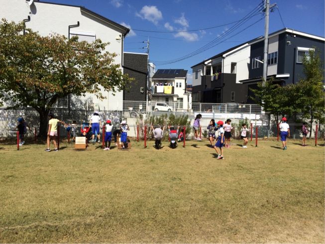 鉄棒を楽しんでいます。