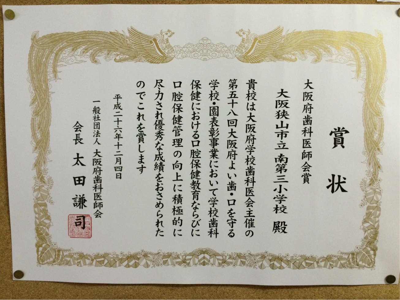 三小も、虫歯が少ないということで、表彰してもらいました。