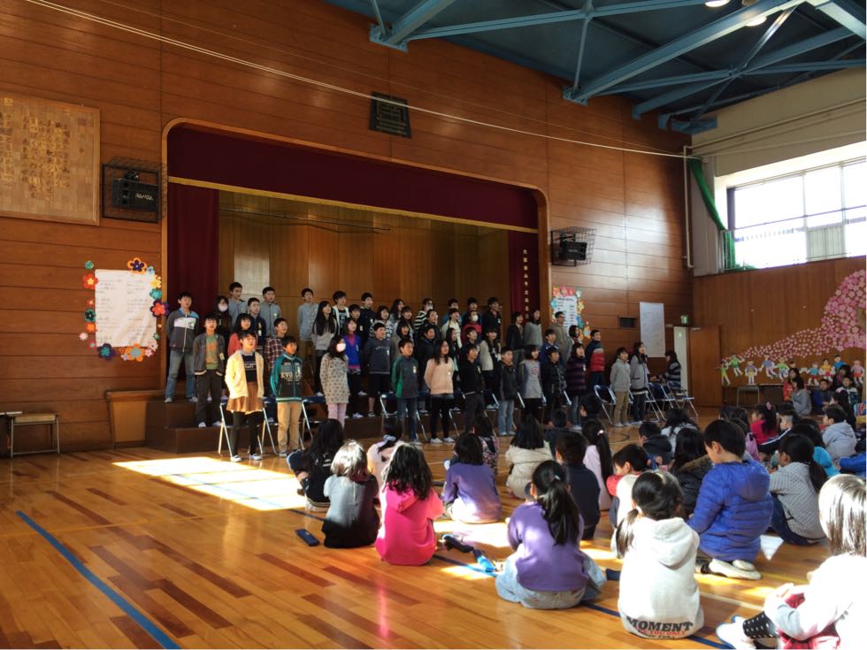 各学年からの歌などの贈り物があり、6年生からのお礼の言葉や歌があった、ほのぼのしたひと時でした。