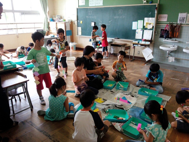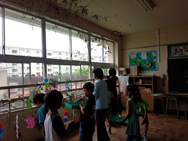 先週末に2年生とたけのこ学級で七夕飾りを作りました。