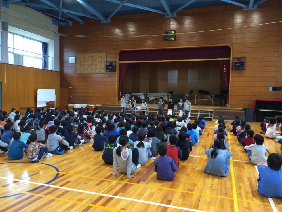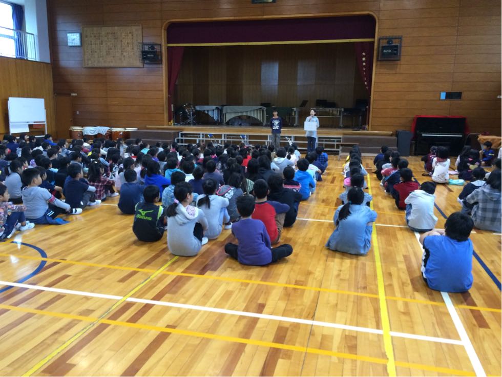 今日の朝会では、禁煙ポスターの表彰、なかよし委員会と図書委員会からのお知らせがありました。