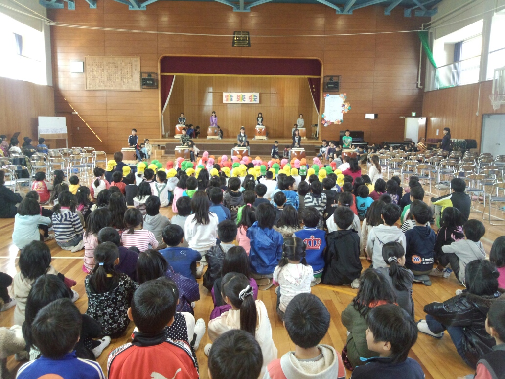 3・4時間目に4・5・6年生がЮ日(土)に行う音楽会のりハーサルを行っています。太鼓の迫力に、ご招待のこども園の子どもたちも、圧倒されている様子です!