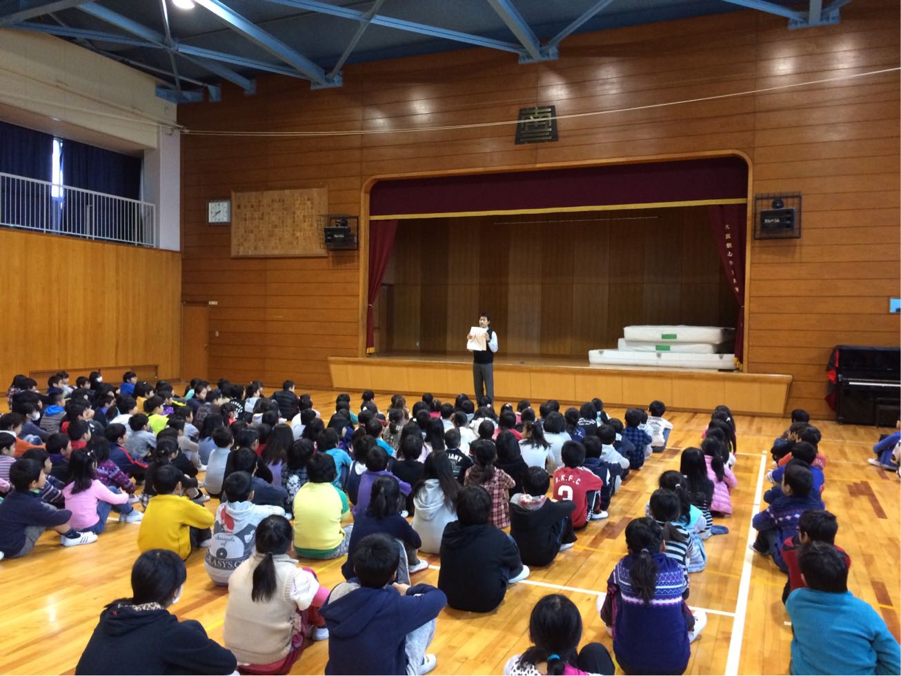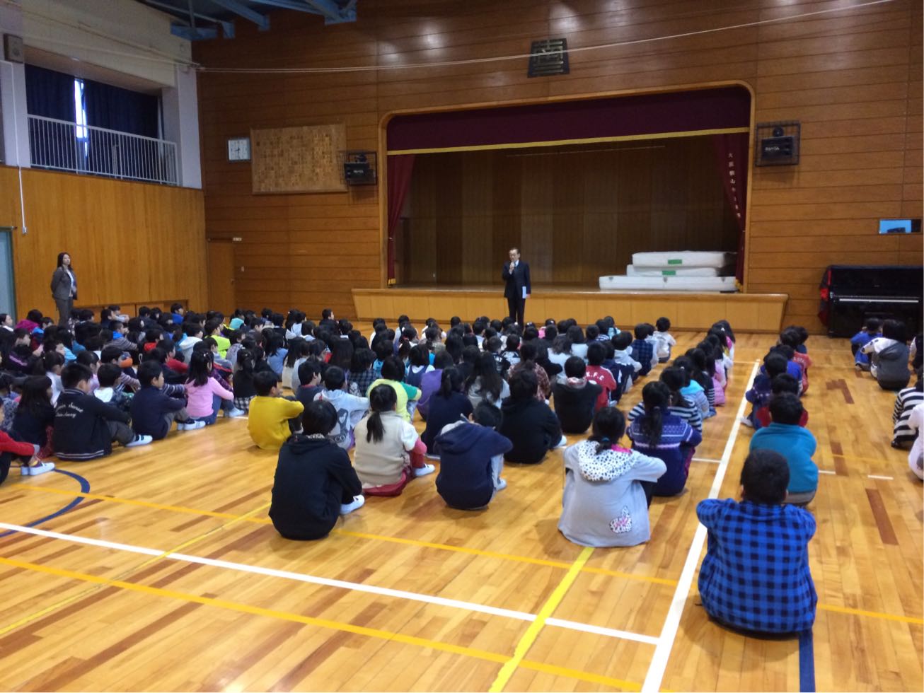 朝会で、校長先生、生徒指導の先生、児童会の人から、冬休みの過ごし方についてのお話がありました。