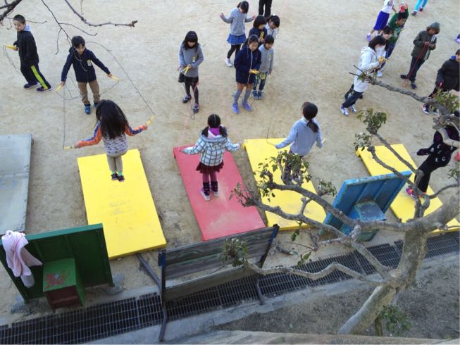 全校でのリズムなわとびのあと、なわとび台でも、元気に跳んでいます。