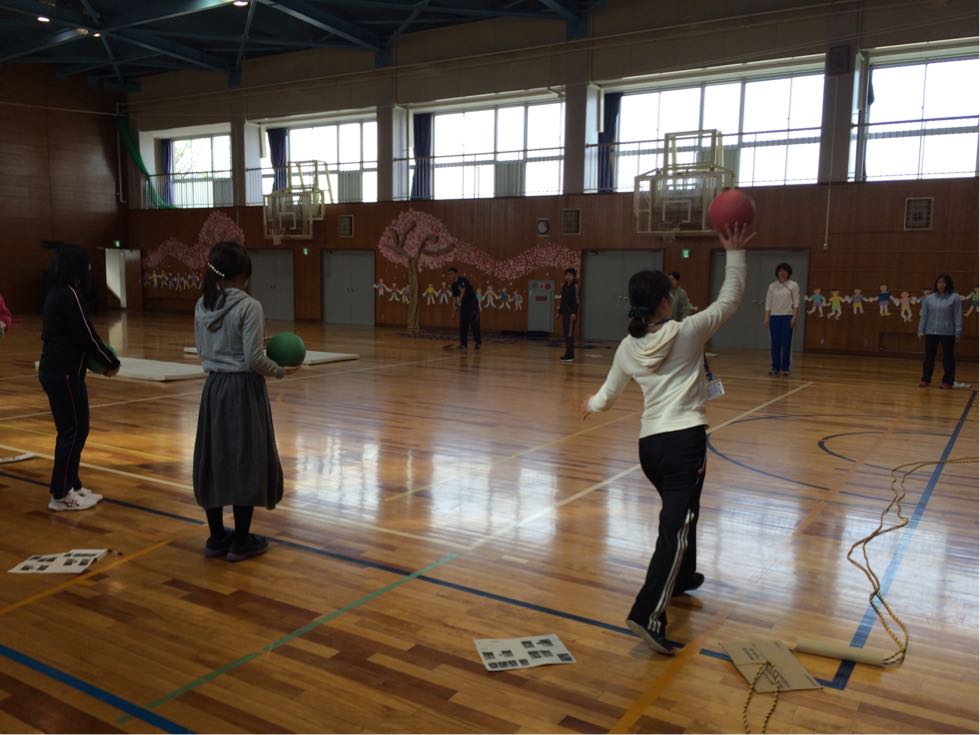 先生たちで、体育の授業のやり方の勉強をしています。