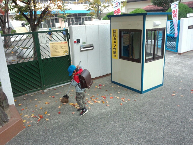 早くきて、校門の前を掃除してくれている児童を見かけました。