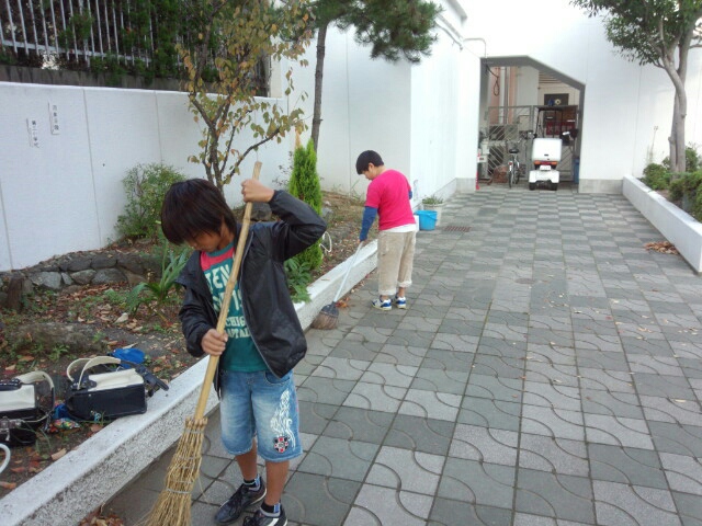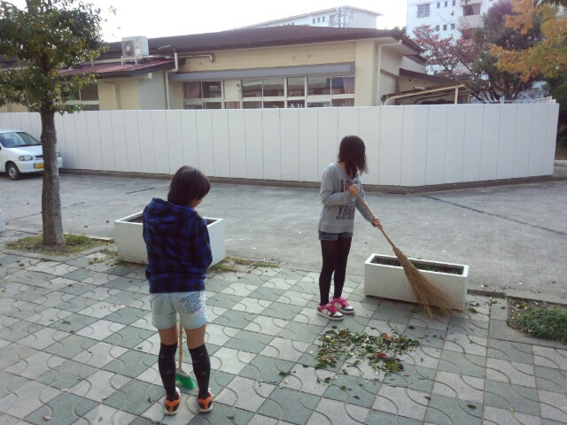 4人の児童が落ち葉の掃除をしてくれていました。ありがとう。