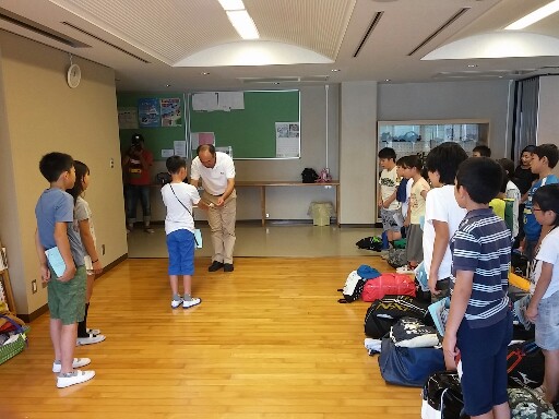 退館式です。2日間の感想を発表し、お世話になった施設の方にお礼を言いました。