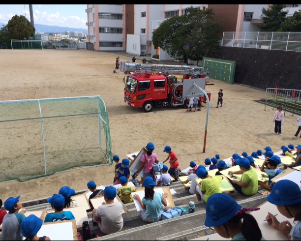 学校に消防車が来てくれました。