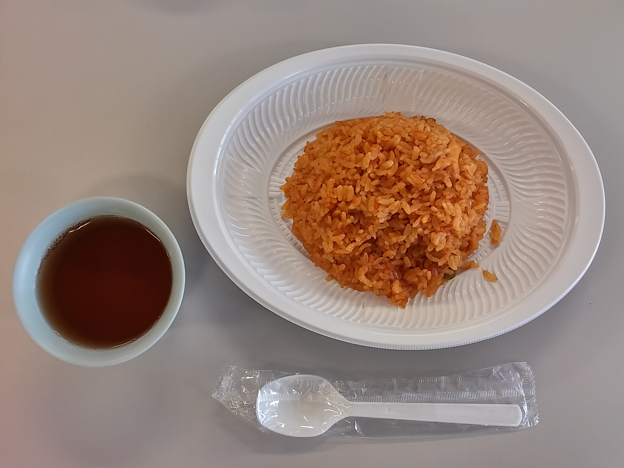 今日のお昼ご飯はチキンライスです。お腹がすいていたので、おかわりに来る人もたくさんいます。