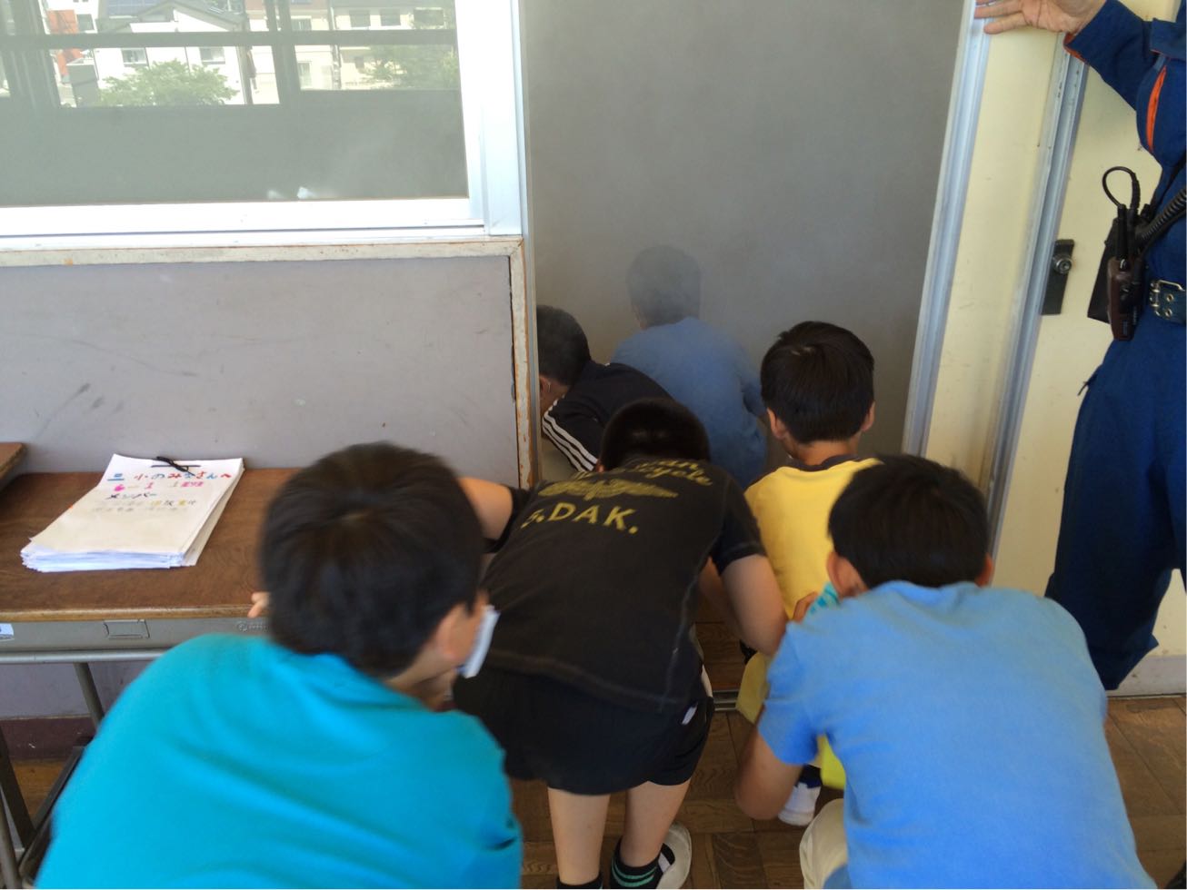 避難訓練の後、5・6年生は煙道体験をさせていただきました。
